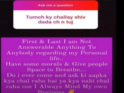 वीणानं इन्स्टाग्रामवर ‘आस्क मी एनिथिंग’ सेगमेंट घेतलं होतं. तिथे तिला एका फॅननं ‘शिव दादा आणि तुझ्यात काय सुरू आहे?’ असा प्रश्न विचारला. या प्रश्नानं वीणा चांगलीच संतापली. युजरच्या या प्रश्नाला तिने तिच्या स्टाईलमध्ये उत्तर दिलं.