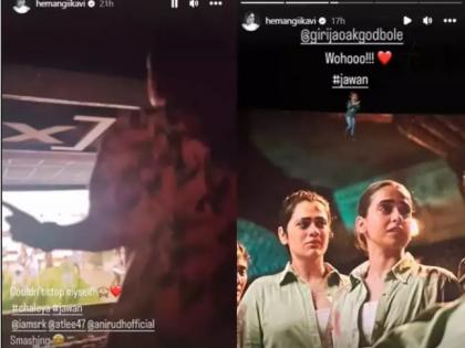'चलेया' या गाण्यावर हेमांगीने डान्स केला असून हे गाणे ट्रेंडींगमध्ये असल्याचं दिसून येतं. सिनेमा पाहताना हेमांगीला थिएटरमध्येच थिरकण्याचा मोह आवरता आला नाही. म्हणून, मी स्वत:ला रोखू शकले नाही, असे कॅप्शन तिने इन्स्टा स्टोरीमध्ये सिनेमागृहातील तिचा व्हिडिओ शेअर करताना दिले आहे.'मी स्वत:ला रोखू शकले नाही' असे कॅप्शन देत तिने हा डान्सचा व्हिडिओ शेअर केला. शिवाय शाहरुख आणि एटली यांचा हा सिनेमा 'Smashing' असल्याचेही ती म्हणाली. सिनेमात शाहरुखसोबत स्क्रिन शेअर केलेल्या मराठमोळ्या गिरीजा ओकचेही तिने कौतुक केले आहे. गिरीजासाठी हेमांगीने वेगळी इन्स्टाग्राम स्टोरी शेअर केली आहे.