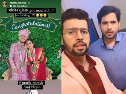 अभिनेता प्रतीक सुरेश याने ३० मे रोजी त्याची मैत्रीण नयनसोबत लग्नगाठ बांधल्याचे समजते आहे. या लग्नसोहळ्याला मालिकेच्या कलाकारांनी आवर्जून हजेरी लावली होती. अस्मिताची भूमिका साकारणारी अभिनेत्री मोनिका दाबाडे हिने प्रतीकच्या लग्नाचा एक खास फोटो सोशल मीडियावर शेअर करून प्रतीक आणि नयनचे अभिनंदन केले आहे. अद्याप अभिनेत्याने कोणतीही पोस्ट शेअर केलेली नाही.