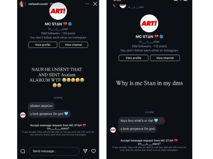 एमसी स्टॅन याने इन्स्टाग्रामवर मुलींना फ्लर्टी मेसेज केल्याचं समोर आलं आहे. एका मुलीने एमसी स्टॅनचा स्क्रिनशॉटमध्ये शेअर करत म्हटलं, "माझ्या डीएममध्ये एमसी स्टॅन काय करतोय…". स्क्रिनशॉर्टमध्ये "मला तुझा फोन नंबर मिळेल… तू खरंच खूप सुंदर आहेस", असा मेसेज एमसी स्टॅन याने केला दिसतोय. यासोबतच त्याने नायला हुसैन नावाच्या एका इन्फ्लुएंसर देखील मेसेज पाठवले आहेत. हे स्क्रिनशॉट रेडिट या साईटवर व्हारलही झाले आहेत. ज्यामुळे रॅपरला चांगलेच ट्रोल केले जात आहे.