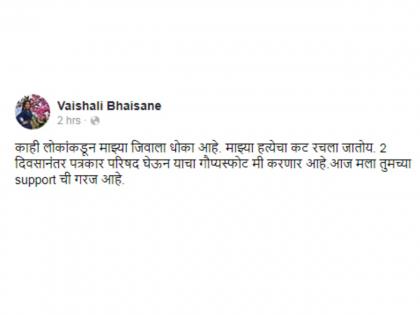 'काही लोकांकडून माझ्या जीवाला धोका आहे. माझ्या हत्येचा कट रचला जात आहे. दोन दिवसांनंतर पत्रकार परिषद घेऊन मी याचा गौफायस्फोट करणार आहे. आज मला तुमच्या सपोर्टची गरज आहे'. असे या पोस्टमध्ये वैशालीने लिहिले आहे. तिची ही पोस्ट सध्या सोशल मीडियावर व्हायरल होतेय. चाहत्यांनी तिला सुरक्षित राहण्याचा सल्ला दिला आहे. नेमकं हे प्रकरण काय आहे हे आता आपल्याला वैशालीने पत्रकार परिषद घेतल्यानंतरच कळेल.