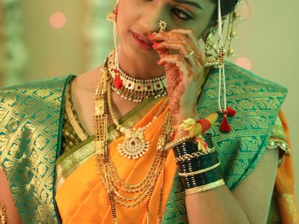 लग्नाच्या विधीमध्ये वैदेहीने नववारी साडीवर घातलेले मंगळसूत्र महिलांच्या पसंतीस पडले आहे.