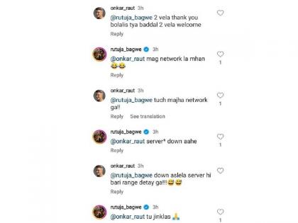 ऋतुजाच्या या कमेंटनंतर ओंकारने थोडं फ्लर्ट केलं. तो म्हणाला, 'तुझं माझं नेटवर्क गं!!' यावर ऋतुजा म्हणाली, 'सर्व्हर डाऊन आहे.' तर ओंकार म्हणाला, 'असलेला सर्व्हरही बरी रेंज देतंय ग!!' यानंतर ऋतुजाने मात्र हार मानली आणि म्हणाली,'तु जिंकलंस'.