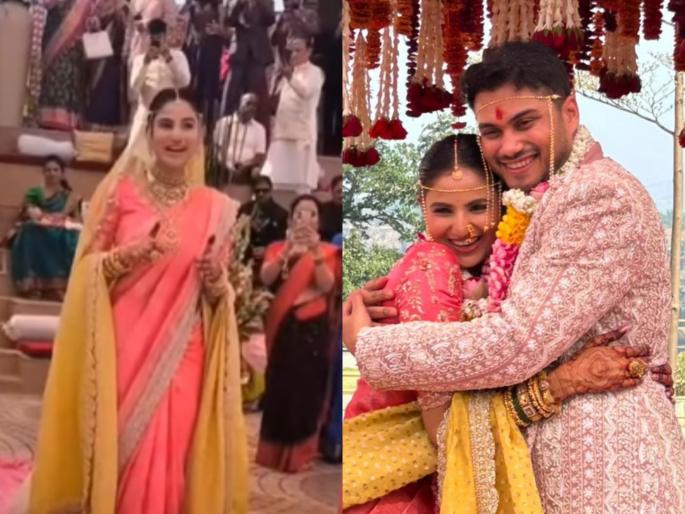पूजा आणि सोहमच्या लग्नाचे फोटो आणि व्हिडीओ सोशल मीडियावर व्हायरल झाले आहेत. या व्हिडीओत पूजाने खास अंदाजात लग्नमंडपात एन्ट्री घेतलेली दिसली. सर्वांनी टाळ्या वाजवून पुजाचं स्वागत केलं. लग्नाच्या आधी ती सोहमकडे पाहून हसताना दिसली. पुढे लग्नात उपस्थित असलेल्या पाहुण्यांनी फुलांच्या पाकळ्यांचा वर्षाव केला. त्यानंतर विधीवत सोहम आणि पूजा लग्नबंधनात अडकले. दोघांच्या लग्नाचे फोटो व्हायरल होताच चाहत्यांनी अभिनंदनाचा वर्षाव केलाय. पूजाने गुलाबी रंगाची साडी परिधान केली होती तर सोहमने आकर्षक डिझाईन असलेला कुर्ता घातला होता.