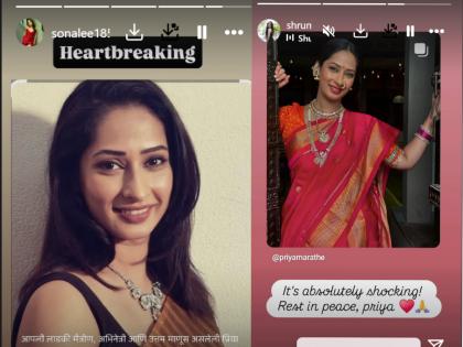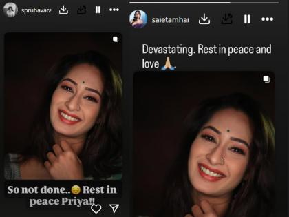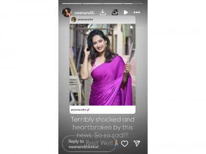 अभिनेत्री स्वानंदी टिकेकरने प्रियाचा फोटो शेअर करत लिहिले, 'ही बातमी वाचून मोठा धक्का बसला आहे. खूप खूप दु:खद..भावपूर्ण श्रद्धांजली.'