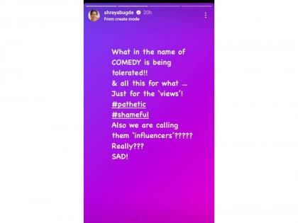 रणवीर अलाहाबादियाचं वक्तव्य व्हायरल झाल्यानंतर श्रेया बुगडेने तिच्या इन्स्टाग्राम पोस्ट शेअर केली आहे. "कॉमेडीच्या नावाखाली काय सहन करावं लागतंय. आणि हे कशासाठी...तर फक्त काही व्ह्यूजसाठी. दयनीय आणि लज्जास्पद...यांना आपण इन्फ्लुएन्सर्स म्हणतो? खरंच? हे निराशाजनक आहे!", असं श्रेयाने म्हटलं आहे.