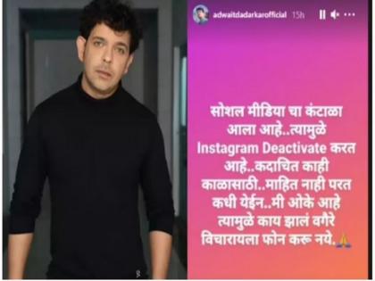 अद्वैतला सोशल मीडियाचा कंटाळा आला होता. याच कारणामुळे त्याने हा निर्णय घेतला आहे. सोशल मीडियावर त्याने या संदर्भातली एक पोस्ट शेअर केली होती. अकाऊंट डिएक्टीव्ह करत आहे. माहित नाही किती काळासाठी, कधी परत येईन. मी ओके आहे. त्यामुळे काय झाले विचारायला फोन करु नये.अशी पोस्टच अव्दैतने लिहीली होती.