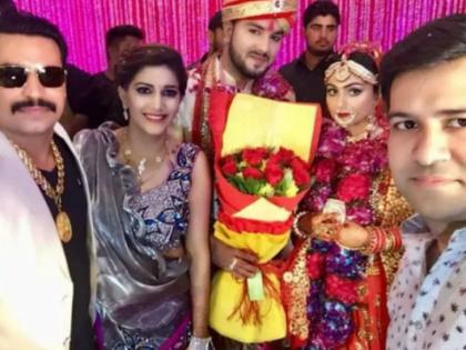 सपना चौधरीने डार्क पिंक कलरचा लहेंगा घातला होता. त्यावर लाइट ब्ल्यू कलरची ओढणी कॅरी केली होती. या अंदाजात ती खूपच सुंदर दिसत होती. जेव्हा सपना नाचत होती, तेव्हा उपस्थितांकडून टाळ्या वाजवून तिला दाद दिली गेली. विशेष म्हणजे सपनाचा डान्स बघून भावाच्याही चेहºयावर हास्य फुलले होते. या लग्नात बिग बॉस ११ मध्ये सपनासोबत सहभागी झालेली अर्शी खान, महजबी आणि आकाश ददलानी हेदेखील बघावयास मिळाले. तसेच लग्नात संपूर्ण गाव सहभागी झाले होते. शिवाय राज्यभरातून अनेक प्रसिद्ध व्यक्तींनी लग्नात हजेरी लावली होती.