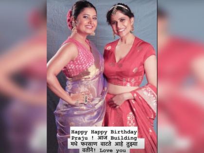 सईने प्राजक्ताच्या वाढदिवसानिमित्त तिच्या इन्स्टाग्राम स्टोरीवर प्राजक्तासोबतचा फोटो शेअर केला आहे. सईने प्राजक्ताला वाढदिवसाच्या शुभेच्छा जरा हटके अंदाजात दिल्या आहेत. हप्पी बर्थ डे प्राजू. आज बिल्डिंगमध्ये फरसाण वाटते आहे तुझ्यावतीने, लव्ह यू. अशी मजेशीर पोस्ट तिने लिहिली आहे. प्राजक्ताने ही थँक्यू सई असा रिप्लाय तिला दिला आहे.