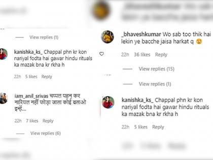 दुसऱ्या यूजरने लिहिले – चप्पल घालून नारळ फोडतेय तेही उलटा. एवढं नाटक कशाला? नारळ कसा फोडायचा हे माहित नाही. आणखी एका यूजरने लिहिले - फॅशनच्या जगात या मॅडम चप्पल काढायला विसरल्या.