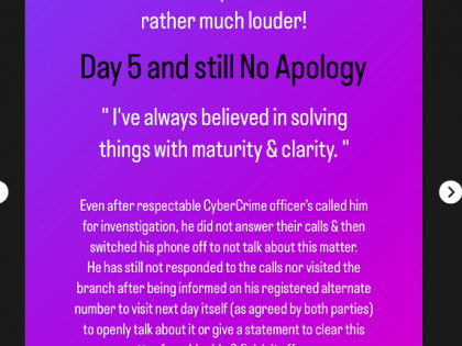 प्राचीने सोशल मीडियावर पोस्ट करुन लिहिलंय की, "मला वाटतं जबाबदारी महत्वाची आहे! मोठ्या आवाजापेक्षा शांतताही खूप काही बोलून जाते. ५ दिवस झाले तरी कोणतीही माफी नाही. कोणतंही प्रकरण स्पष्ट शब्दांमध्ये आणि प्रगल्भतेने सोडवण्यामध्ये माझा भर असतो. सायबर क्राइममधील आदरणीय अधिकाऱ्यांनी तपास करण्यासाठी त्यांना फोन केला. पण त्यांनी फोन उचलला नाही. पुढे फोन स्वीच ऑफ करुन ते या प्रकरणाविषयी काहीच बोलले नाहीत."