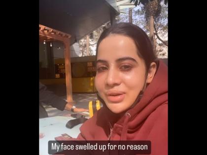 अभिनेत्री उर्फी जावेदने इंस्टाग्राम स्टोरीवर एक व्हिडिओ शेअर केला आहे ज्यामध्ये अभिनेत्रीचा चेहरा गंभीरपणे सुजलेला आहे. बोल्ड ब्युटी खुद्द तिचा चेहरा एवढा का सुजला आहे हे पाहून आश्चर्यचकित झाले आहे. या व्हिडिओमध्ये ती एका मित्रासोबत बसली असून तिसरी व्यक्ती व्हिडिओ शूट करत आहे.
