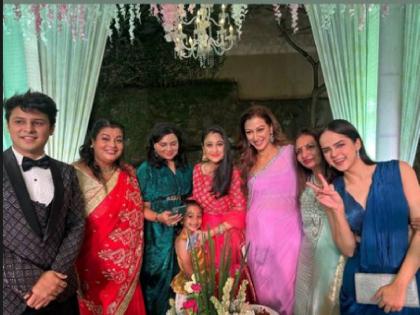 'तारक मेहता का उल्टा चष्मा' (Taarak Mehta Ka Ultah Chashma) फेम दयाबेन म्हणजेच दिशा वकानी (Disha Vakani) गेल्या काही वर्षांपासून मनोरंजनसृष्टीपासून दूर आहे. २०१७ मध्ये दिशा वकानीने मालिका सोडली. दोन मुलांच्या जन्मानंतर ती संसारातच रमली. दयाबेन मालिकेत कधी परतणार याकडे चाहते आजही आस लावून बसले आहेत. मात्र दिशाचा मालिकेत परतण्याचा विचार दिसत नाही. मालिकेत सोनूच्या भूमिकेत दिसलेली अभिनेत्री पलक सिंधवानीने इन्स्टाग्रामवर एका लग्नातील फोटो शेअर केला आहे. या फोटोत तारक मेहता मधील काही कलाकार दिसत असून दिशा वकानीही दिसत आहे.