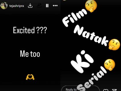 तेजश्री प्रधान सोशल मीडियावर अॅक्टिव्ह असते. ती या माध्यमातूनच बरेचदा चाहत्यांना अपडेट देत असते. नुकतीच तिने इन्स्टाग्रामवर स्टोरी शेअर केली आहे. यामध्ये तिने लिहिले, 'Excited? मी सुद्धा'. तसंच आणखी एक स्टोरी पोस्ट करत ती लिहिते, 'सिनेमा, नाटक की मालिका? कोणत्या माध्यमात बघायला जास्त आवडेल?'.