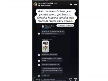 चाहत्याने जुईच्या इन्स्टाग्राम इनबॉक्समध्ये मेसेज केला होता. "जुई लग्न कर कोणीही असू दे पण कर...सल्ला आहे कारण वेळ नाहीये", असा मेसेज चाहत्याने केला होता. त्यानंतर जुईच्या स्टोरीलाही या चाहत्याने रिप्लाय दिला होता. "टीआरपी कमी होत आहे मॅडम. तुमचं मार्केटिंग कमी पडतंय. मेकअप आणि दिसणं वेगळं असतं. टीव्ही सिरियलमध्ये मॅडम तुम्ही मोठे असाल पण लग्न नाही फॅमिली नाही विचार करा", असं त्याने म्हटलं होतं.
