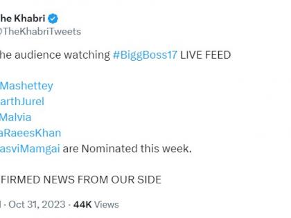 बिग बॉस 17 च्या एका फॅन पेजने नॉमिनेशन अपडेट शेअर केले आहे. बिग बॉस 17 च्या तिसऱ्या आठवड्यात 5 स्पर्धकांना नॉमिनेट करण्यात आले आहे. या आठवड्यात अरुण महाशेट्टी, समर्थ जुरेल, ईशा मालवीय, सना रईस खान आणि मनस्वी ममगाई यांना नॉमिनेट करण्यात आले आहे. तथापि, निर्मात्यांनी अद्याप नामांकनाबाबत कोणतीही अधिकृत पुष्टी केलेली नाही.