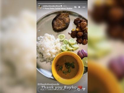 सिद्धार्थने इन्स्टाग्राम स्टोरीमध्ये त्याच्या जेवणाच्या ताटाचा फोटो शेअर केला आहे. या फोटोमध्ये तितीक्षाने त्याच्यासाठी खास जेवणाचा बेत केल्याचं दिसून येत आहे. शुटिंगच्या बिझी शेड्युलमधून वेळ काढत तितीक्षाने सिद्धार्थसाठी खास मालवणी पद्धतीचं नॉन व्हेज जेवण केलं.