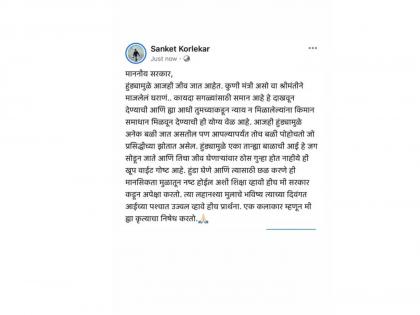 मराठी अभिनेता संकेत कोर्लेकर यानेदेखील इन्स्टाग्राम स्टोरीमध्ये पोस्ट शेअर करत संताप व्यक्त केला आहे. "माननीय सरकार, हुंड्यामुळे आजही जीव जात आहेत. कुणी मंत्री असो वा श्रीमंतीने माजलेलं घराणं...कायदा सगळ्यांसाठी समान आहे हे दाखवून देण्याची आणि याआधी तुमच्याकडून न्याय न मिळालेल्यांना किमान समाधान मिळवून देण्याची ही योग्य वेळ आहे. आजही हुंड्यामुळे अनेक बळी जात असतील पण आपल्यापर्यंत तोच बळी पोहोचतो जो प्रसिद्धीच्या झोतात असेल", असं त्याने पोस्टमध्ये म्हटलं आहे.