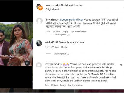 मालिकेच्या या प्रोमोवर चाहत्यांनी कमेंट केल्या आहेत. "वीणा जास्त सुंदर दिसतेय. ती मेन हिरोईन हवी होती. तर मालिका पाहायला जास्त मजा आली असती", असं एका चाहत्याने म्हटलं आहे. "वीणाला साईड रोल का दिला आहे?" अशी कमेंटही केली आहे. "वीणाला मुख्य भूमिकेत ठेवा कारण तिचा चाहता वर्ग संपूर्ण महाराष्ट्रभर आहे. वीणामुळे टीआरपी वाढायला मदत होईल", असंही एकाने म्हटलं आहे.