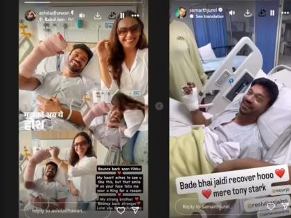 बिग बॉस फेम समर्थ जुरेलने रुग्णालयातून व्हिडिओ शेअर केला आहे. यामध्ये विकी रुग्णालयाच्या बेडवर आहे. त्याच्या उजव्या हाताला फ्रॅक्चर आहे तर डाव्या हाताला सलाईन लावली आहे. त्याच्या बाजूला अंकिता उभी आहे आणि त्याची काळजी घेत आहे. व्हिडिओ समर्थ गंमतीत म्हणतो, 'दोन तासानंतर रुग्णालयाबाहेर भेटू'. यासोबत त्याने कॅप्शनमध्ये लिहिले, 'मोठ्या भावा लवकर बरा हो. मेरे टोनी स्टार्क'.
