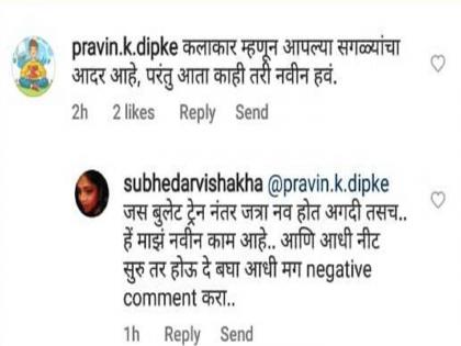 विशाखाने शुभविवाह मालिकेचा प्रोमो तिच्या सोशल मीडिया अकाऊंटवर शेअर केला आणि एका युजरने तिला ट्रोल करण्याचा प्रयत्न केला. ‘कलाकार म्हणून आपल्या सगळ्यांचा आदर आहे, परंतू आता काहीतरी नवीन हवं...,’ अशी कमेंट या युजरने केली. त्यावर विशाखानेही त्याला खडे बोल सुनावले. ‘जसं बुलेट ट्रेननंतर जत्रा नवं होतं अगदी तसंच... हे माझं नवीन काम आहे...आणि आधी नीट तर सुरु होऊ दे. बघा आणि मग नकारात्मक कमेंट करा...’, असं उत्तर तिने त्या युजरची बोलती बंद केली.
