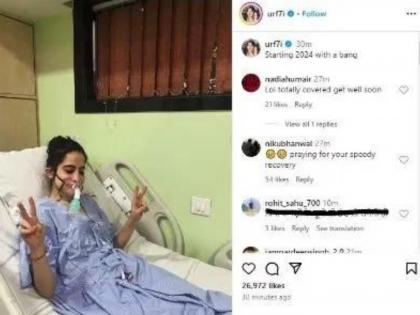 या फोटोमध्ये उर्फी जावेद हॉस्पिटलच्या कपड्यांमध्ये बेडवर पडलेली दिसत आहे. तसेच, तिने ऑक्सिजन मास्क घातला आहे. एवढेच नाही तर तिने नेब्युलायझरही लावले आहे. आजारी स्थितीतही उर्फी पोज देताना दिसत आहे. ती तिच्या दोन्ही हातांनी विजयाची बोटं दाखवत आहे. उर्फीने फोटोसोबत कॅप्शन दिले होते की, “२०२४ची धमाकेदार सुरुवात होत आहे.”