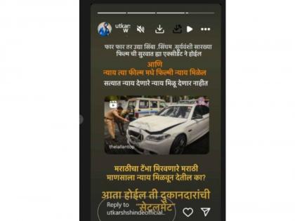 उत्कर्षने त्याच्या इन्स्टाग्रामवरुन या अपघातासंदर्भातील एक सोशल पोस्ट शेअर केली आहे. ही पोस्ट शेअर करत त्याने संताप व्यक्त केला आहे. "फार फार तर उद्या सिंबा, सिंघम, सूर्यवंशी यांसारख्या चित्रपटाची सुरुवात या अपघाताने होईल आणि त्या सिनेमात फिल्मी न्याय मिळेल. सत्यात न्याय देणारे न्याय मिळू देणार नाहीत. मराठीचा टेंभा मिरवणारे मराठी माणसाला न्याय मिळवून देतील का? आता दुकानदारांची सेटलमेंट होईल", असं त्याने इन्स्टा स्टोरीमध्ये म्हटलं आहे.