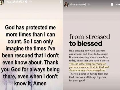 एबीपी न्यूज रिपोर्टनुसार, युजवेंद्र चहल आणि धनश्री वर्मा दोघांना आज मुंबईतील बांद्रा स्थित कौटुंबिक न्यायालयात बोलवण्यात आलं आहे. चार वाजताची वेळ देण्यात आली आहे. दोघंही न्यायमूर्तींसमोर हजर होतील आणि कायदेशीररित्या विभक्त होतील. आपसी सहमतीने त्यांनी हा निर्णय घेतला आहे. दरम्यान दोघांनी सोशल मिडिया क्रिप्टिक पोस्टही शेअर केल्या आहेत.
