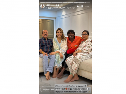 नुकताच सूरज निक्की तांबोळीच्या घरी पोहोचला. याचा खास फोटो अभिनेत्रीने इन्स्टाग्राम स्टोरीवर शेअर केला आहे. यासोबत कॅप्शनमध्ये निक्कीनं लिहलं, "वेलकम होम सूरज चव्हाण… 'झापुक झुपूक' सिनेमा येत्या २५ एप्रिलला प्रदर्शित होतोय…सर्वांनी थिएटरमध्ये जाऊन हा सिनेमा बघा". निक्कीने शेअर केलेल्या फोटोमध्ये तिचे आई-बाबाही दिसून आले. तर सुरजनेही निक्कीसोबतचा एक व्हिडीओ आपल्या इन्स्टाग्रामवर शेअर केलाय.