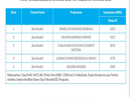 निवेदिता सराफ, तेजश्री प्रधान, गिरिश ओक आणि रवी पटवर्धन यांची मुख्य भूमिका असलेल्या अग्गंबाई सासूबाई या मालिकेला प्रेक्षकांची चांगलीच पसंती मिळत असून ही मालिका सुरू झाल्यानंतर काहीच आठवड्यात या मालिकेने प्रेक्षकांच्या मनात आपली जागा निर्माण केली आहे. ही मालिका टिआरपीच्या रेसमध्ये पाचव्या क्रमांकावर आहे तर नुकतीच सुरू झालेली लग्नाची वाईफ वेडिंगची बायको ही मालिका चौथ्या क्रमांकावर आहे.