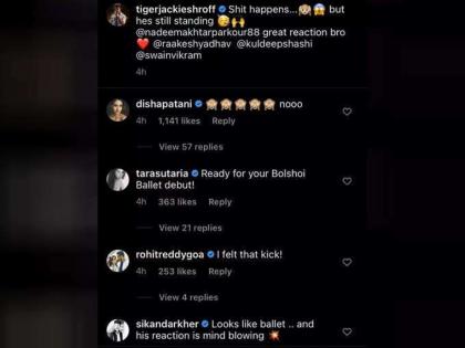 टायगर श्रॉफने त्याच्या इन्स्टाग्राम अकाऊंटवर एक व्हिडीओ शेअर केला आहे. यात आपल्या ट्रेनरसोबत तो फ्लाइंग किकची प्रॅक्टिस करत आहे. टायगर श्रॉफच्या या व्हिडीओवर त्याची कथित गर्लफ्रेन्ड दिशा पटानीने केलेली कमेंट सर्वांचं लक्ष वेधून घेत आहे. त्यासोबतच अनेक सेलिब्रिटीही त्याची ही फ्लाइंग किक पाहून अवाक् झाले आहेत. (म्हणे, सलमान खूपच गोड...! दिशा पटानी ‘भाईजान’वर फिदा, क्षणात दिला होकार)