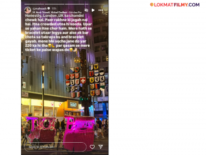 आरजे महवशनं इन्स्टाग्राम स्टोरीवर लंडन भेटीचा अनुभव शेअर केलाय. ज्यात तिनं लंडनचा उल्लेख 'चांदणी चौक' असा केला. "इथे खूप गर्दी आहे, सगळीकडे कचरा आहे आणि हो... चोरही आहेत" असं ती म्हणाली. फिरताना तिचं ब्रेसलेट चोरीला गेलं असून, त्याबद्दलही तिने सांगितलं.