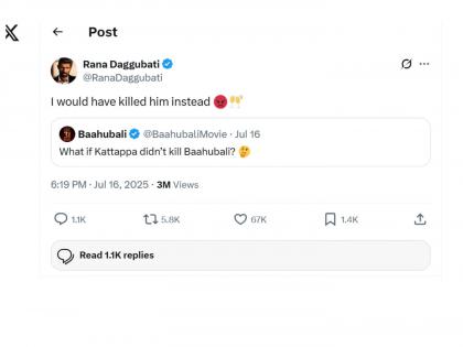 'बाहुबली' सिनेमात प्रभास, अनुष्का शेट्टी, राम्या क्रिष्णन यांच्या मुख्य भूमिका होत्या. तर राणा दग्गुबतीने भल्लादेव ही निगेटिव्ह भूमिका साकारली होती. अभिनेता सत्यराज कटप्पाच्या भूमिकेत होते. एका चाहत्याने राणा दग्गुबतीला X वर "जर कटप्पाने बाहुबलीला मारलं नसतं तर?" असा प्रश्न विचारला. चाहत्याच्या या प्रश्नावर भल्लालदेवने मजेशीर उत्तर दिलं. या प्रश्नाचं उत्तर देताना भल्लादेव म्हणाला, "तर मी त्याला मारून टाकलं असतं".
