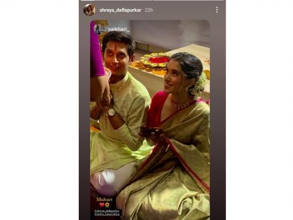 शाल्व किंजवडेकर गर्लफ्रेंड श्रेया डफळापुरकरसोबत लग्नाच्या बेडीत अडकणार आहे. गेल्या वर्षी शाल्व आणि श्रेयाने साखरपुडा केला होता. मोठ्या थाटामाटात त्यांचा साखरपुडा पार पडला होता. त्यांच्या साखरपुड्याला अनेक कलाकारांनी हजेरी लावली होती. साखरपुड्यानंतर आता शाल्व आणि श्रेयाच्या लग्नाचा मुहुर्त ठरला आहे. श्रेयाने तिच्या इन्स्टा स्टोरीवरुन ही गुडन्यूज चाहत्यांना दिली आहे. शाल्वबरोबरचा फोटो शेअर करत श्रेयाने मुहुर्त असं कॅप्शन दिलं आहे. पण, अद्याप त्यांनी लग्नाच्या तारखेबाबत उलगडा केलेला नाही.