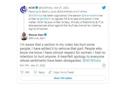 राष्ट्रीय महिला आयोगाच्या पोस्टनंतर भुवन बामने जाहीरपणे माफी मागितली आहे. त्याने म्हटले की, 'माझ्या व्हिडिओच्या त्या भागामुळे काही लोकांचे मन दुखावल्याची माहिती मला मिळाली आहे. मी व्हिडिओ एडिट करून तो भाग काढून टाकला आहे. जे मला ओळखतात त्यांनाही माहीत आहे की मी महिलांचा किती आदर करतो. या व्हिडीओद्वारे कुणाला दुखावण्याचा माझा हेतू नव्हता. मी सर्वांची माफी मागतो'