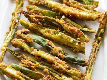 भेंडी उभी, पातळ चिरून भांड्यात घ्यावी. त्यावर मीठ, लाल तिखट, कॉर्नफ्लोअर टाकून भेंडीत असलेल्या ओलाव्यातच भिजवावे. मावेल तेवढेच पीठ टाकावे. पाणी वापरू नये. तापलेल्या तेलात ही भेंडी तळून घ्यावी. सर्व्ह करताना लाल तिखट आणि चाट मसाला टाकावा. कुरकुरीत भेंडी तयार.