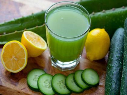 १) काकडीच्या ज्यूसमध्ये सोडियम नसतं आणि काकडी नैसर्गिक रुपाने डाययुरेटिक असते. यामुळे शरीरातील विषारी तत्व आणि फॅट सेल्स काकडी बाहेर काढते. सोबतच याने ब्लॉटिंग होण्यापासूनही बचाव होतो. जर तुम्हाला भूक लागली तर दोन काकड्या कापून खाव्यात. याने तुमची भूक शांत होईल. काकडीमध्ये पोटॅशिअम, व्हिटॅमिन सी, मॅग्नेशिअम आणि व्हिटॅमिन ए असतात. याने शरीराला पोषण मिळतं.