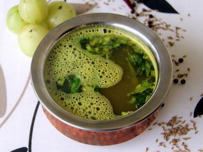 5) आवळा रस्सम :- जिरे, काळीमिरी, उडीदडाळ, धने कोरडेच भाजून घ्यावे. मिक्सरच्या भांड्यात हे मसाले, आवळ्याच्या फोडी, हिरव्या मिरच्या, आलं आणि पाणी घालूून वाटून घ्या. एका भांड्यात हे वाटण भरपूर पाणी आण हळद, मीठ घालून उकळून घ्या. साजूक तूपात जिरे, हिंग, कढीपत्त्याची फोडणी करु न ती रस्समवर घालावी. कोथिंबीर घालायला मात्र विसरु नका. यात हवी असल्यास शिजवलेली तुरडाळ, आलं-लसूण पेस्टही घालू शकता.