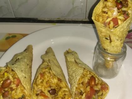हा प्रकार जपानमध्ये लोकप्रिय आहे. आपण तो पापड वापरून तयार करु शकतो. पापड भाजल्यावर गरम असतानाच त्याला टॅकोजचा आकार द्यावा हे करताना दोनही बाजू थोड्या आत वाकवाव्यात. या मधल्या भागात तुम्ही उकडलेल्या भाज्या, चीज भरून खाऊ शकता. नाचो हा प्रकारदेखील करून पाहता येतो. पापड त्रिकोणी आकारात कापून ते तळून घ्या. त्यावर कॉर्न, बटाटा, काळी मिरी पावडर भुरभुरा की नाचो तयार.