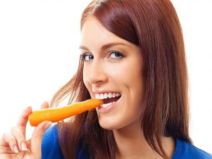 दात स्वच्छ आणि निरोगी ठेवण्यासाठी गाजर खाणं सुरू करा. गाजर जेव्हा तुम्ही चावता तेव्हा याने दातांच्यामध्ये फसलेला अन्न बाहेर निघतं. तसेच याने लाळेची निर्मितीही होते. गाजर खाल तर दात आणि हिरड्यांचं आरोग्य चांगलं राहतं.