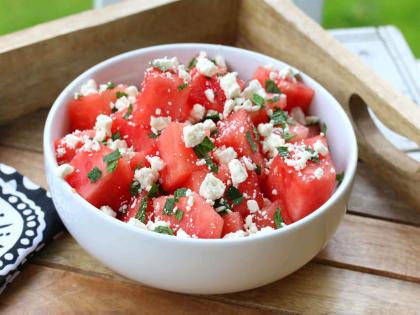 कलिंगड फक्त शरीराला थंडावा देत नाही तर यामध्ये अनेक औषधी गुणधर्मही असतात. हे उन्हाळ्यासाठी सुपर फूड ठरतं. कलिंगड सलाडच्या स्वरूपात खाऊ शकता. हे तयार करण्यासाठी कलिंगड तुकड्यांमध्ये कापून यामध्ये पनीरस पाइन नट्स आणि तुळशीची पानं एकत्र करा. कलिंगड सलाड तयार आहे.