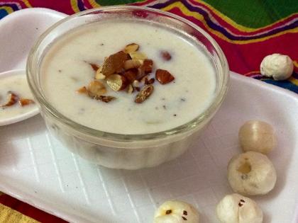 गुजराती बांधव गोडधोड पदार्थांचे भलतेच शौकीन आहेत. साहजिकच नवरात्रीसारख्या सणाला गोड पदार्थ बनणार नाहीत असे होणार नाही. मखाने खीर देखील अशाच गोड पदार्थांच्या यादीतील एक आहे, जी गुजराती बांधव नवरात्रात बनवतात. मखाने म्हणजेच कमळाचं बी. प्रोटीन्स आणि कॅल्शियमनं समृध्द अत्यंत पौष्टिक अशा मखान्यांना साजूक तूपात परतून घेऊन त्याची पूड बनवली जाते. नंतर दूध, साखरआणि मखान्याची पूड एकत्र आटवले जाते. यात वेलची आणि जायफळ पूड घातली की तयार होते मखान्याची खीर.