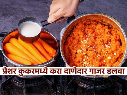 how to make gajar halwa in pressure cooker : pressure cooker gajar halwa recipe : easy gajar halwa method : Instant carrot halwa recipe : गाजर हलवा करायला जाता आणि गाजर किसायचा कंटाळा येतो? गाजर न किसताच करा झटपट होणारा गाजर हलवा... ...