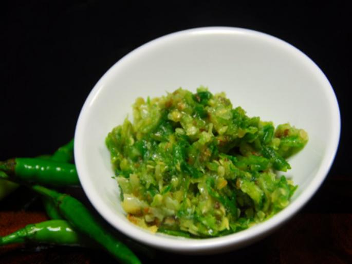 - जर हिरव्यागार मिरच्या खूप तिखट असतील तर पोपटी रंगाच्या काही कमी तिखट मिरच्या वापराव्यात.
