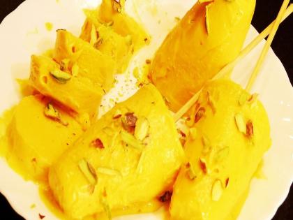 दूध मंद आचेवर आटवून घ्या. एका बाउलमध्ये एक मोठा चमचा थंड दूध आणि कॉरनफ्लॉवर एकत्र करून पेस्ट तयार करा. जेव्हा दूध आटून अर्धं होईल त्यावेळी त्यामध्ये कॉर्नफ्लॉअरची पेस्ट टाकून घट्ट होईपर्यंत शिजवून घ्या. जेव्हा हे थोडं थंड होईल तेव्हा यामध्ये साखर एकत्र करा. यामध्ये आंब्याचा गर, मध आणि आंब्याचे काही तुकडे एकत्र करा. तयार मिश्रण एका बाउलमध्ये भरून फ्रिजरमध्ये ठेवा. जेव्हा हे फ्रिज होईल त्यानंतर यामध्ये ड्रायफ्रुट्सचे तुकडे एकत्र करा.