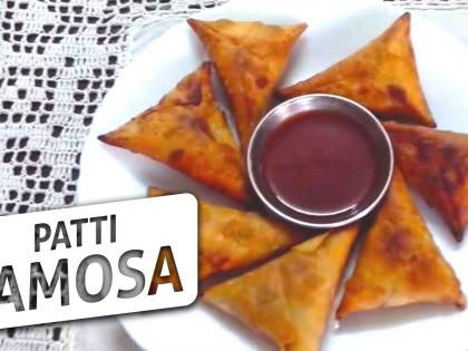 1) पट्टी समोसा- हा देखील समोशाचा पारंपरिक आकार व प्रकार आहे . हा आकार बनवण्यासाठी मैद्याची गोल पारी नाही तर लांब आयताकृती पट्टी बनवावी लागते. आता तर या पट्ट्या रेडिमेडही मिळू लागल्या आहेत. पट्टीच्या एका कडेवर सारण भरु न त्रिकोणात ही पट्टी दुमडत नेऊन समोशाचा त्रिकोणी आकार दिला जातो.. पट्टी समोशात पोहे किंवा कांद्याचे सारणही भरलं जातं.