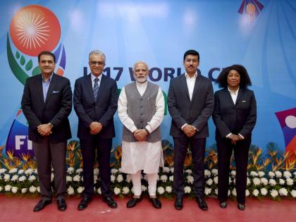 भारतीय संघाच्या अंडर १७ वर्ल्डकपच्या अमेरिकेविरुद्ध होणाºया लढतीआधी पंतप्रधान नरेंद्र मोदी जवाहरलाल नेहरू स्टेडियमवर पोहोचले. भारतात प्रथमच फिफा स्पर्धा होत आहे आणि आपल्या ‘मन की बात’ या कार्यक्रमात या स्पर्धेविषयी रोचकता दाखवणारे मोदी व्हीआयपीए मंचावरून उतरत मैदानावर पोहोचले. तेथे त्यांनी भारत व अमेरिकेच्या फुटबॉलपटूंशी हस्तांदोलन केले. त्यानंतर दोन्ही देशांचे राष्ट्रगीत झाले.