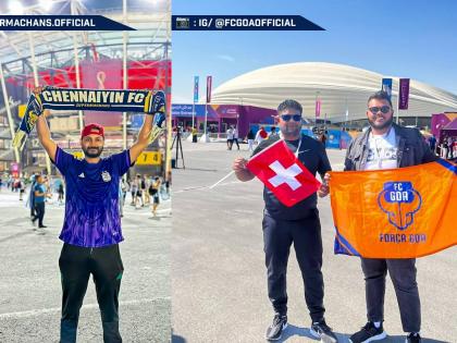 कतार येथे सुरू असलेली फुटबॉल वर्ल्ड कप स्पर्धा अंतिम टप्प्यात आली आहे आणि आजपासून उपांत्यपूर्व फेरीचे सामने होणार आहेत. जगभरात पाहिल्या जाणाऱ्या फिफा वर्ल्ड कप स्पर्धेचा भारतातही मोठा चाहता वर्ग आहे आणि भारतातून अनेक चाहते कतारमध्ये आपापल्या संघांना चिअर करण्यासाठी पोहोचले आहेत. पण, कतारच्या स्टेडियममध्ये हिरो इंडियन सुपर लीगचे ( आयएसएल) रंगही दिसत आहेत. कतारमध्ये भारतीय चाहते आयएसएलमधील त्यांच्या फेव्हरिट संघांची जर्सी घालून फुटबॉल वर्ल्ड कपचा आस्वाद घेताना दिसत आहेत. फिफा वर्ल्ड कप २०२२ मध्ये इंडियन सुपर लीगचे रंग पाहायला मिळत आहेत.