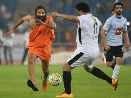 फुटबॉलच्या मैदानात रामदेव बाबांची किक