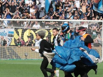 टेंशन घेऊ नका भारत आणि दक्षिण आफ्रिका यांच्यातील सामन्यात असं काही घडलेलं नाही. सीरी ए फुटबॉल लीगमधील हा प्रसंग आहे. सासौलो आणि इंटर मिलान यांच्यात इटलीत झालेल्या सामन्यात चाहतीनं चक्क पॅराशूटनं मैदानावर लँडींग केले. त्यामुळे काही काळासाठी सामना थांबवण्यात आला होता. इंटर मिलानचा स्ट्रायकर रोमेलू लुकाकू याने पेनल्टी घेतल्यानंतरच त्वरित ही घटना घडली. इंटर मिलानने हा सामना 4-3 असा जिंकला. पॅराशूटनं ती मैदानावर उतरल्यानंतर त्वरित सुरक्षारक्षकांनी तिच्याकडे धाव घेतली.